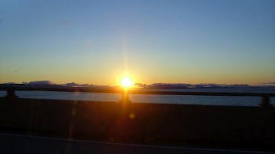 The sunset from San Mateo bridge coming into San Francisco was beautiful.