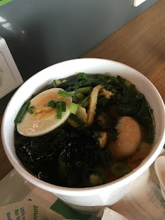 During the layover at the Amsterdam airport, we planned to visit few things at the airport, but we had to give up. The airport is divided into the regions and you have to go through the security check between some of the regions. We weren't quite sure if we could come back in time to catch the connection flight. We decide to have a light lunch. There wasn't any food which triggered our interest. We figured the Udong couldn't go terribly wrong, but it did.